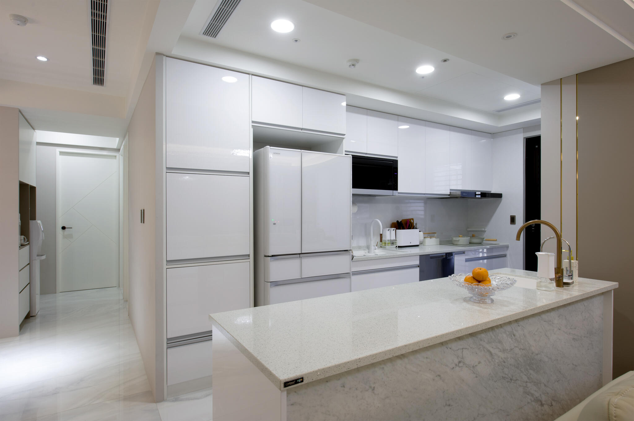 透過現代簡約設計語彙為底蘊,靈活置入鏡面、圖騰、石材、金屬細節等歐式風格的經典元素,擘劃出精緻華麗的居家面貌,猶如一場視覺饗宴,並妥善規劃場域格局,創建開闊的空間,使空間不僅擁有質感美觀的設計,更富有極佳的實用機能。