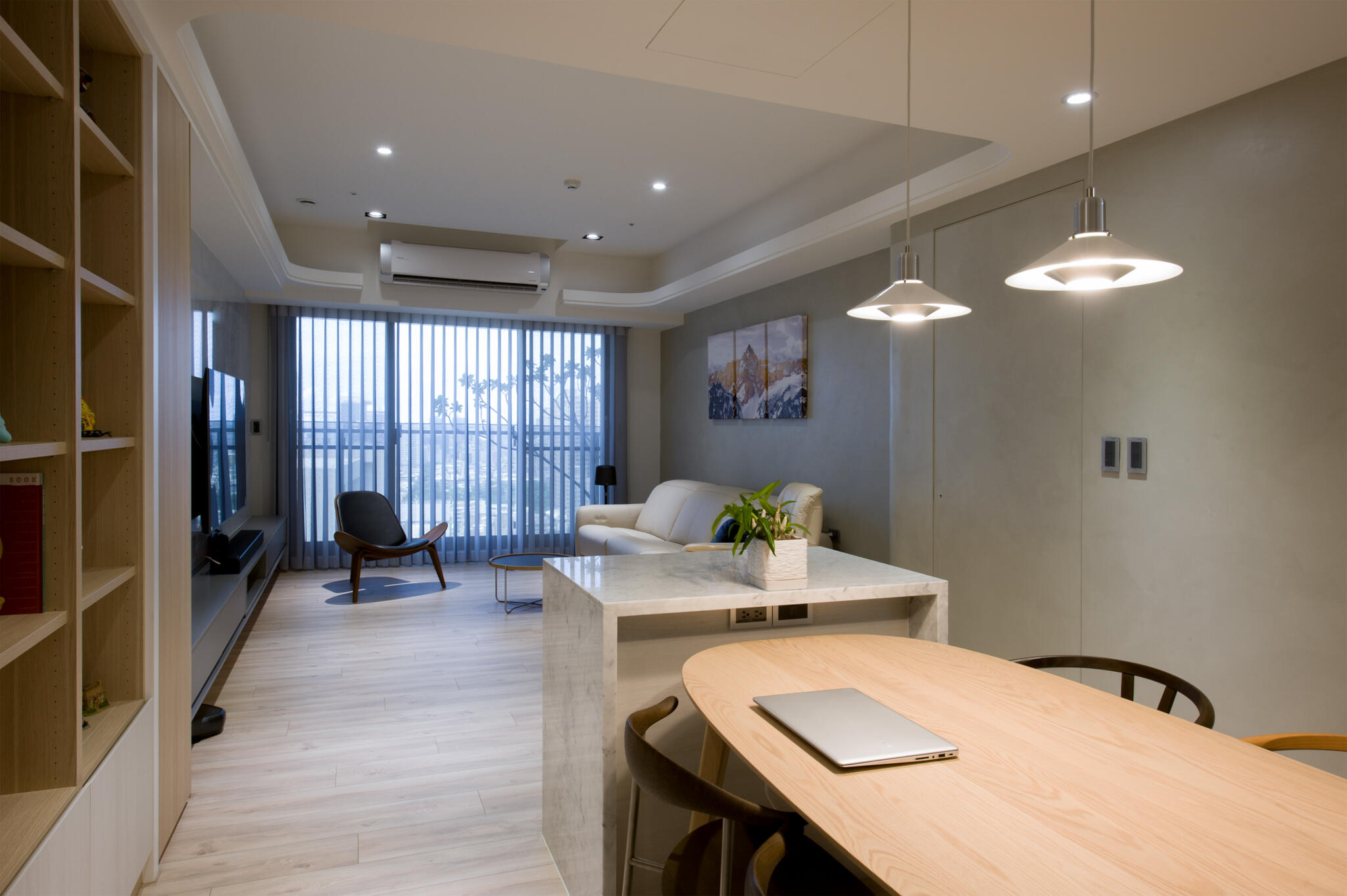 - 主要材料 - 天然石材、天然木皮、司曼特塗料、玻璃、鐵件、超耐磨木地板、系統櫥櫃