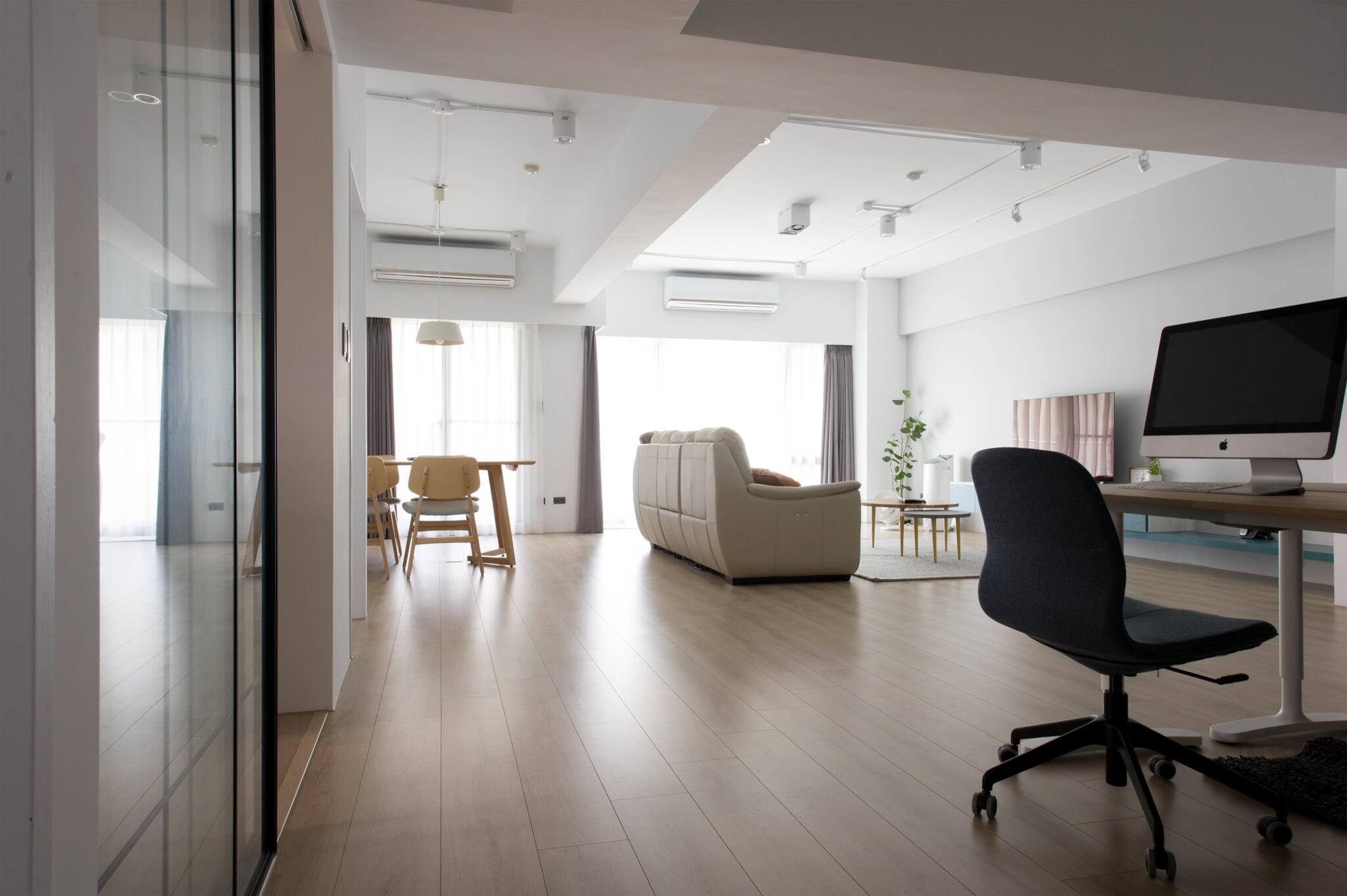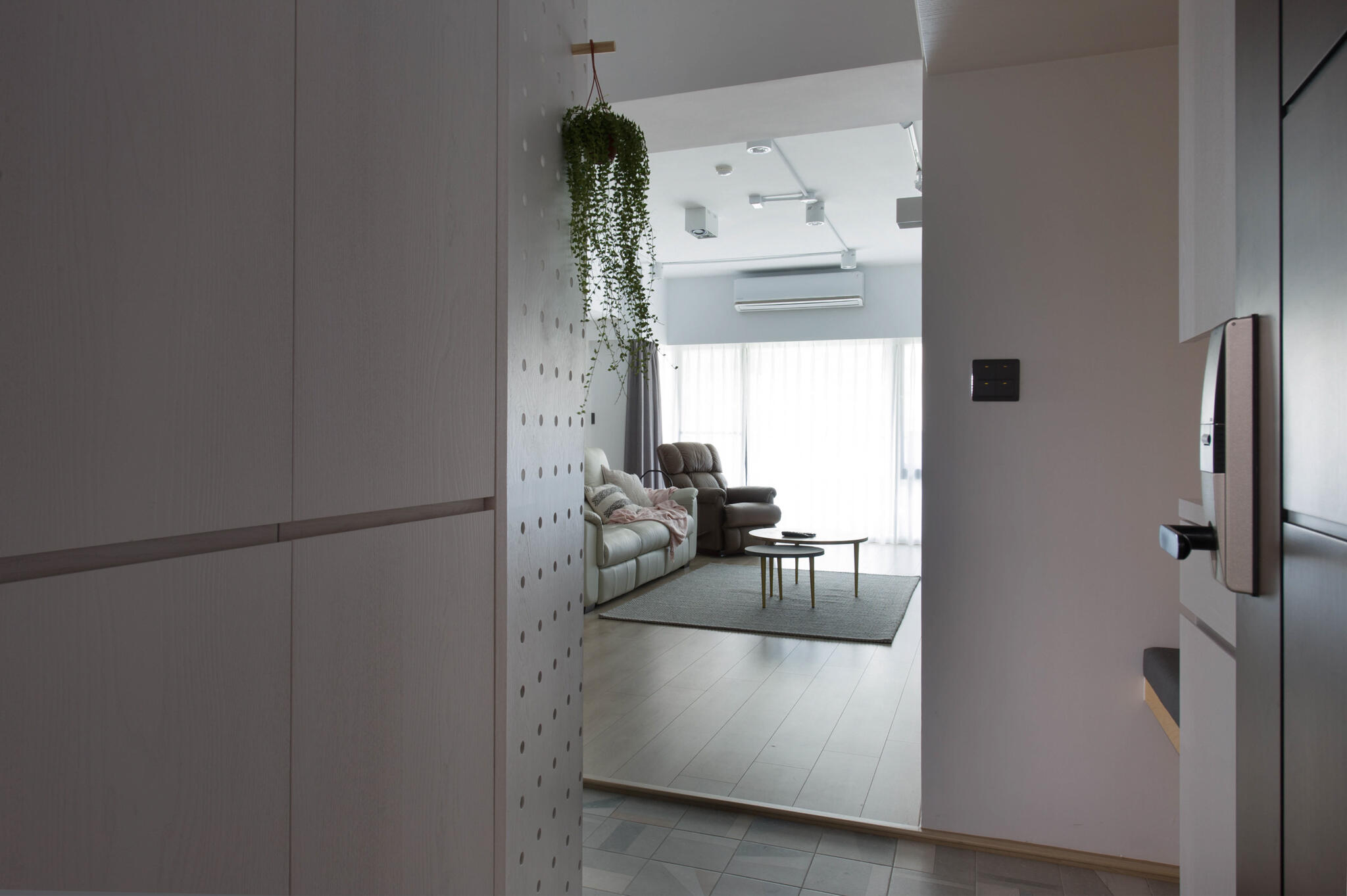 一進門自然光透過紗映入眼簾自然而清透,明亮而柔和,沉靜舒適的光與灰色調的家居營造一室溫馨素雅,將原有的隔牆移除釋放空間,創造開闊通透的視覺感受,以白色作為整體色調,光線透過窗紗進到室內,虛實的光影搭配木質的溫潤享受無時無刻美好光影氛圍,在躍動光影中鋪敘居家的活力。