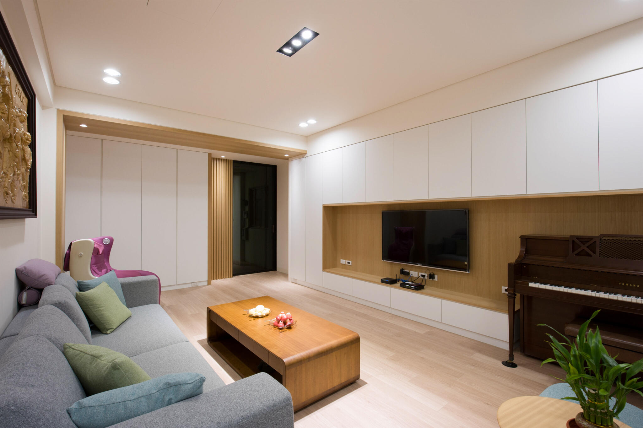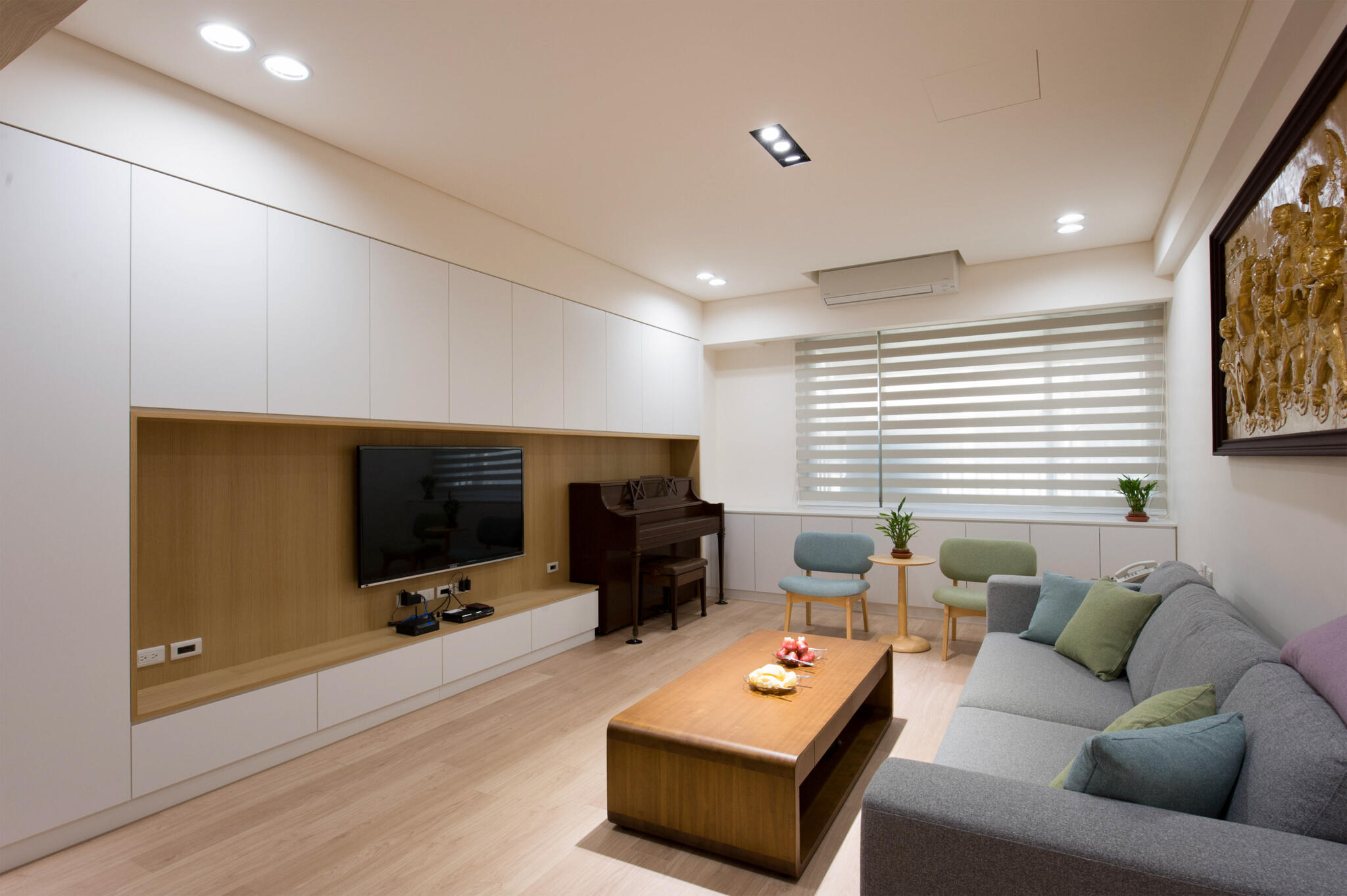 因家庭成員的增加,以公領域作為主要調整空間,捨棄複雜的用材,化繁為簡讓視覺單純且美觀與機能兼具,利用軟件、色彩與材質的搭配,簡單的裝修結合跳色家飾軟件,添加空間活潑拉近生活的距離感,更貼近屋主居住的舒適空間。