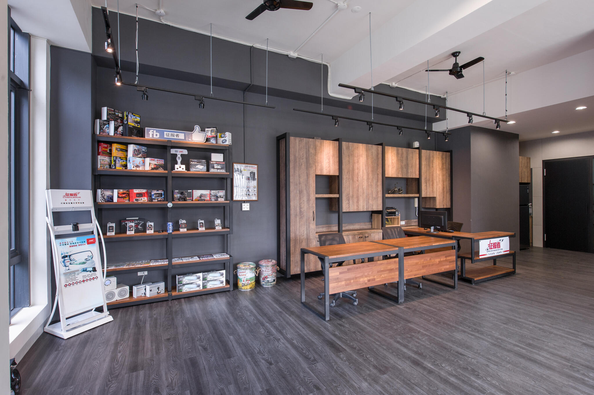 展售店面以工業風裝潢呈現斑駁復古的質感,透過粗獷的鐵件、管線、水泥粉光等工業風設計元素,緊扣仿古風韻與純粹裸質的雙軸線,沉浸工業風、映現復刻感。