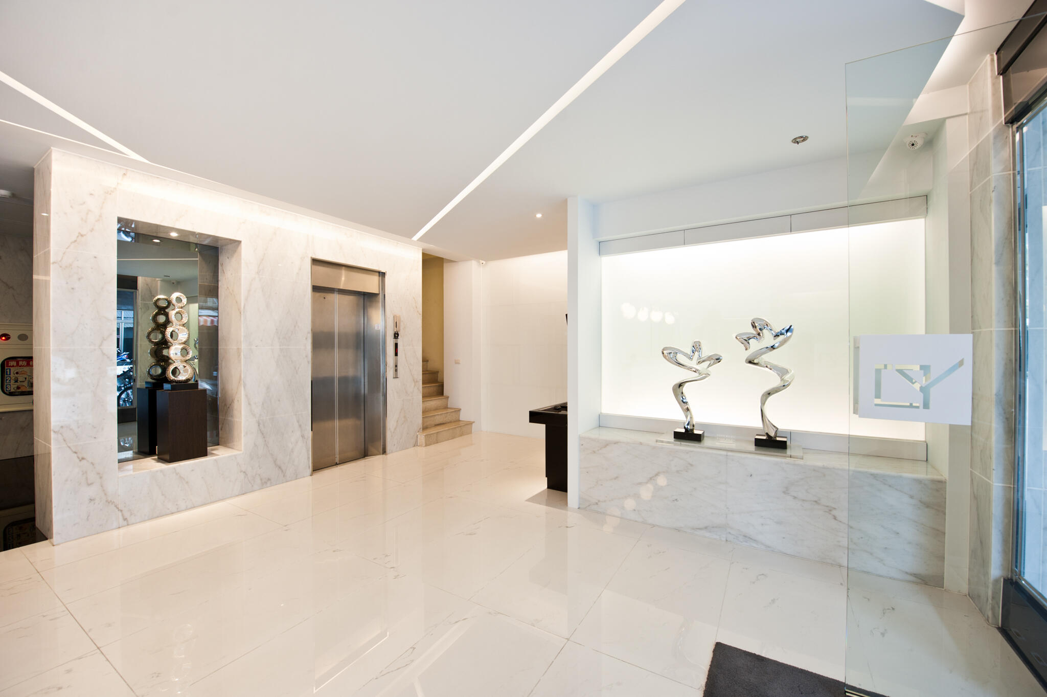 主要材料 - 鐵件、烤漆玻璃、壓克力、天然石材、進口壁布